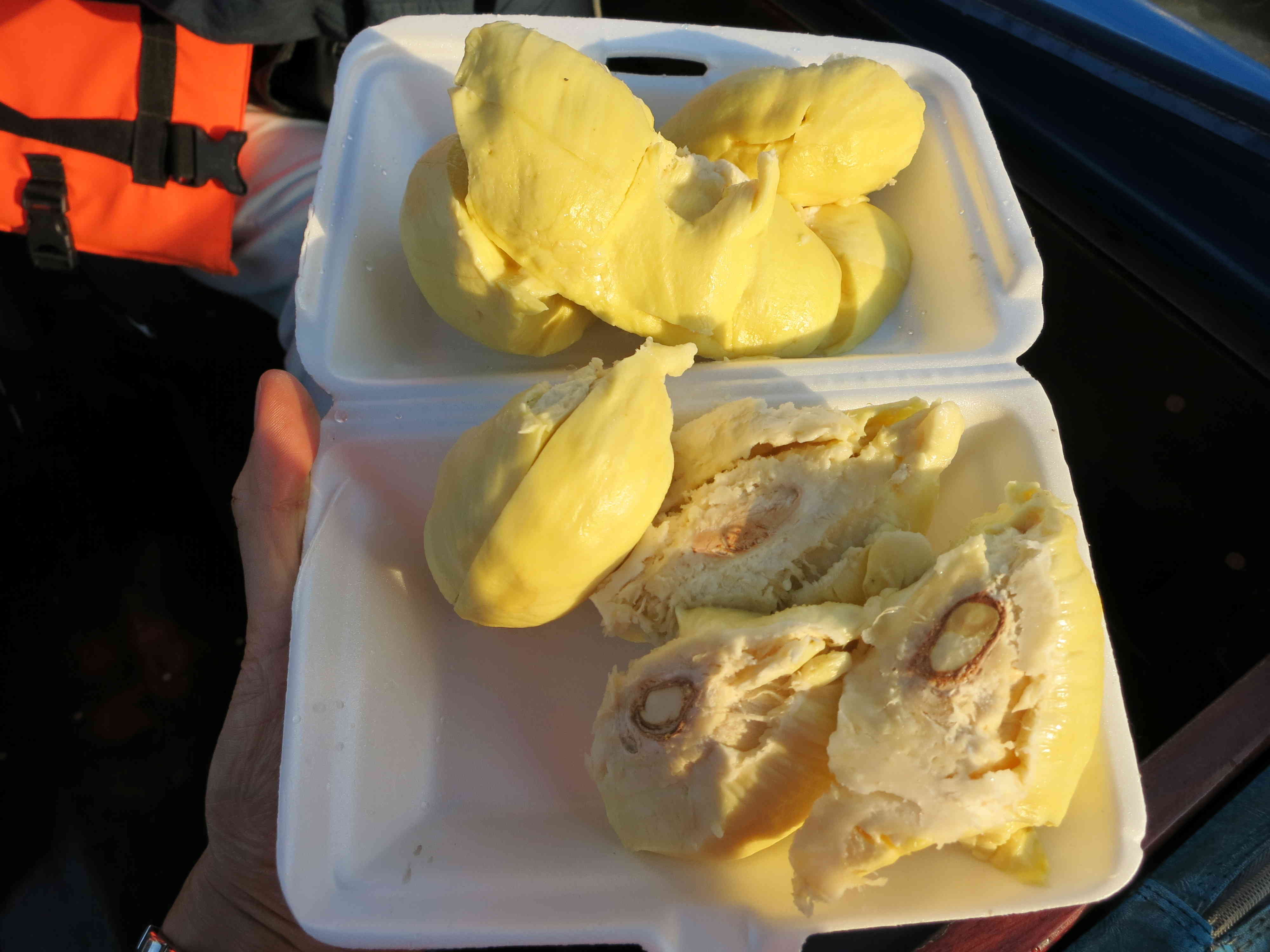 途中でおっさんが船で現れて、ドリアンを売りつけに来ました。